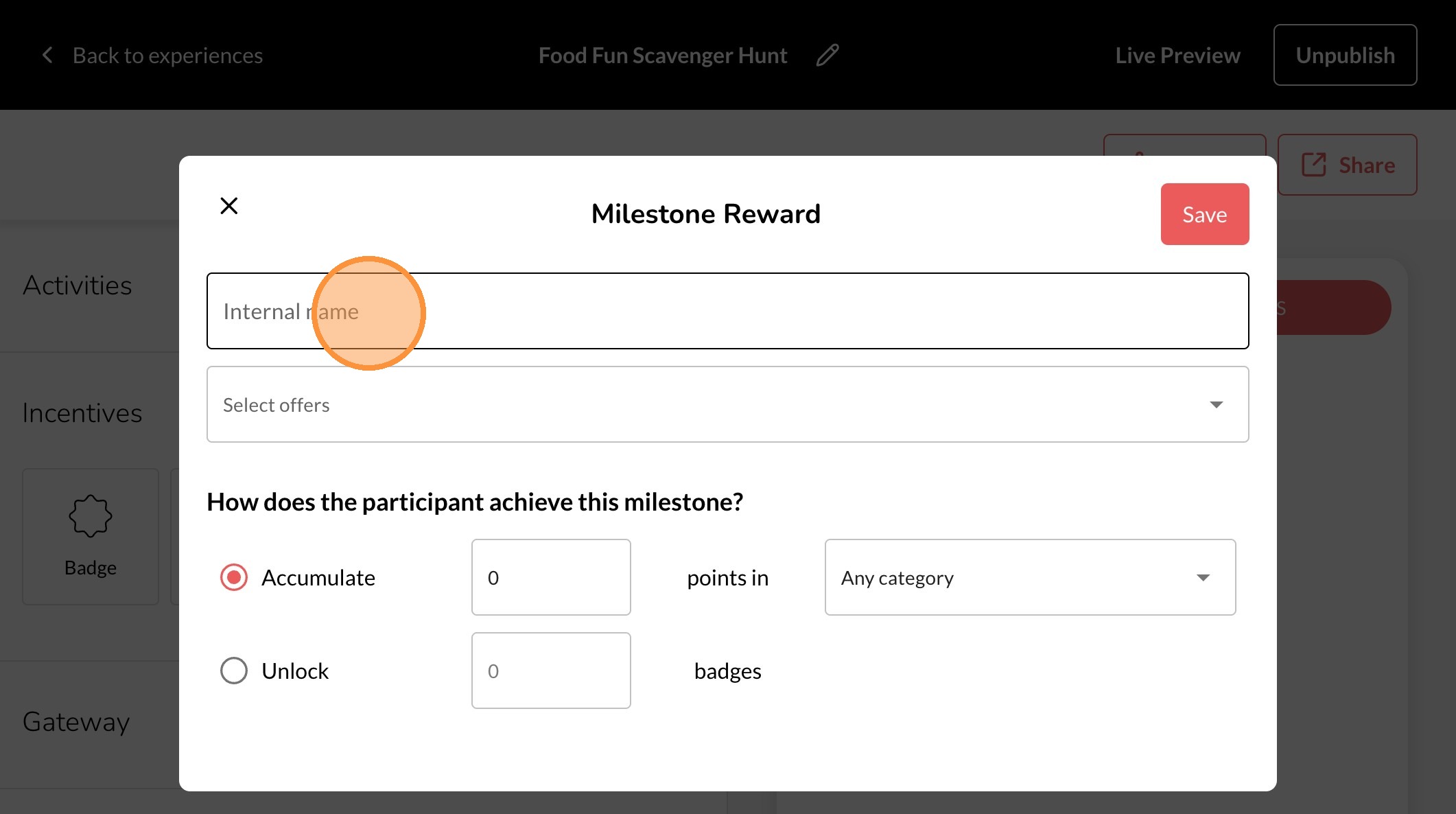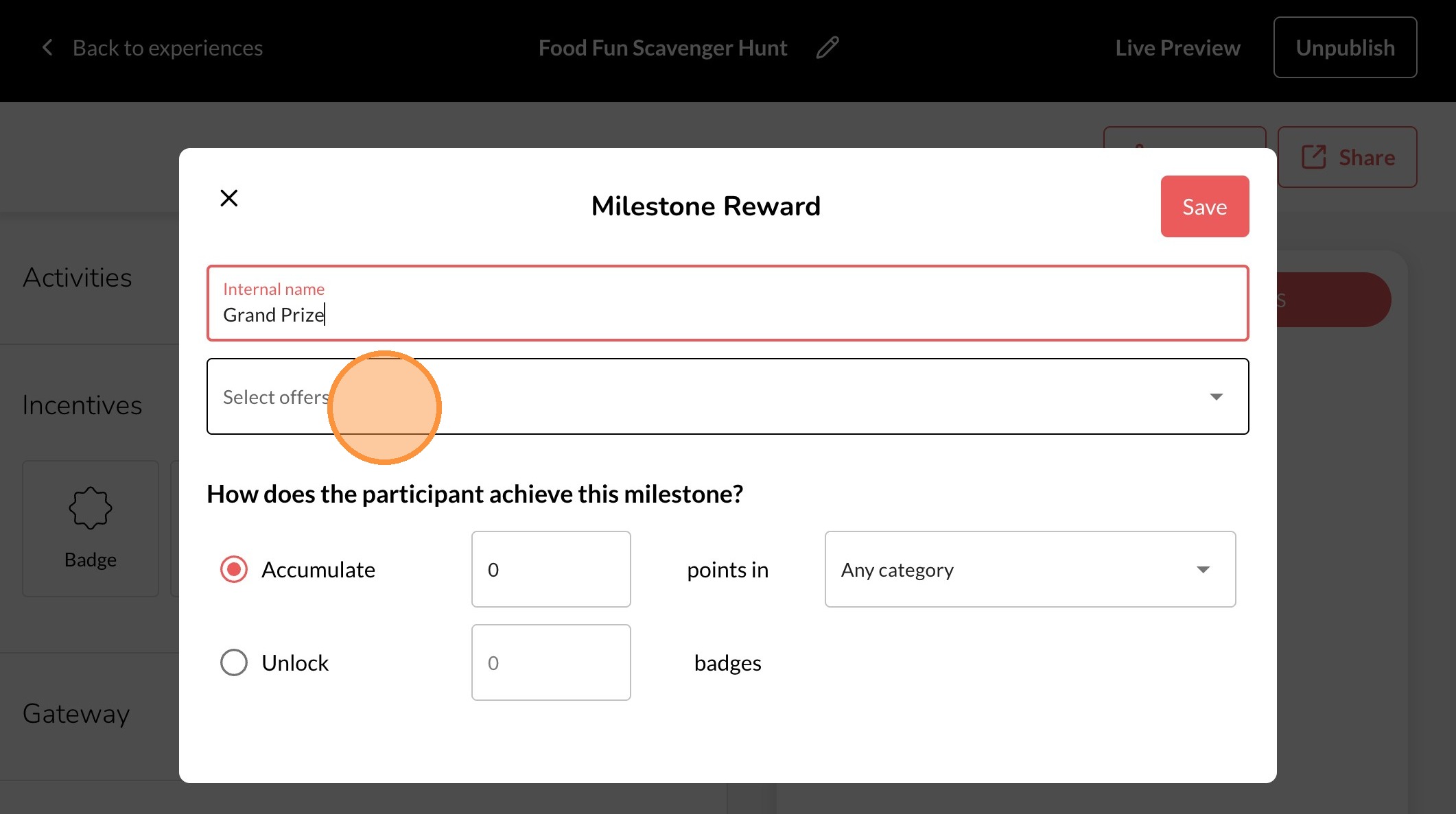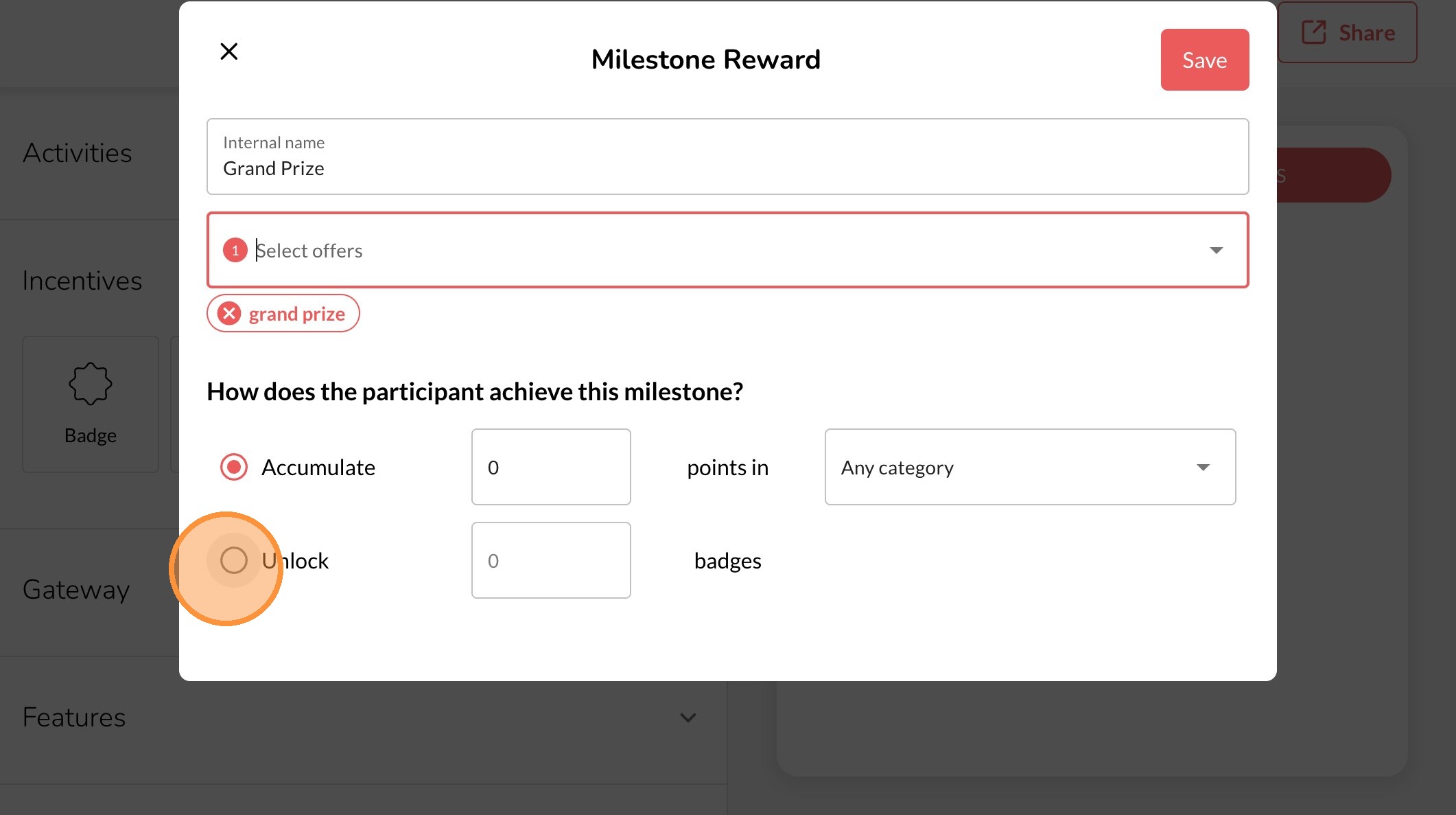 11. Choose how the user will earn the Milestone Reward