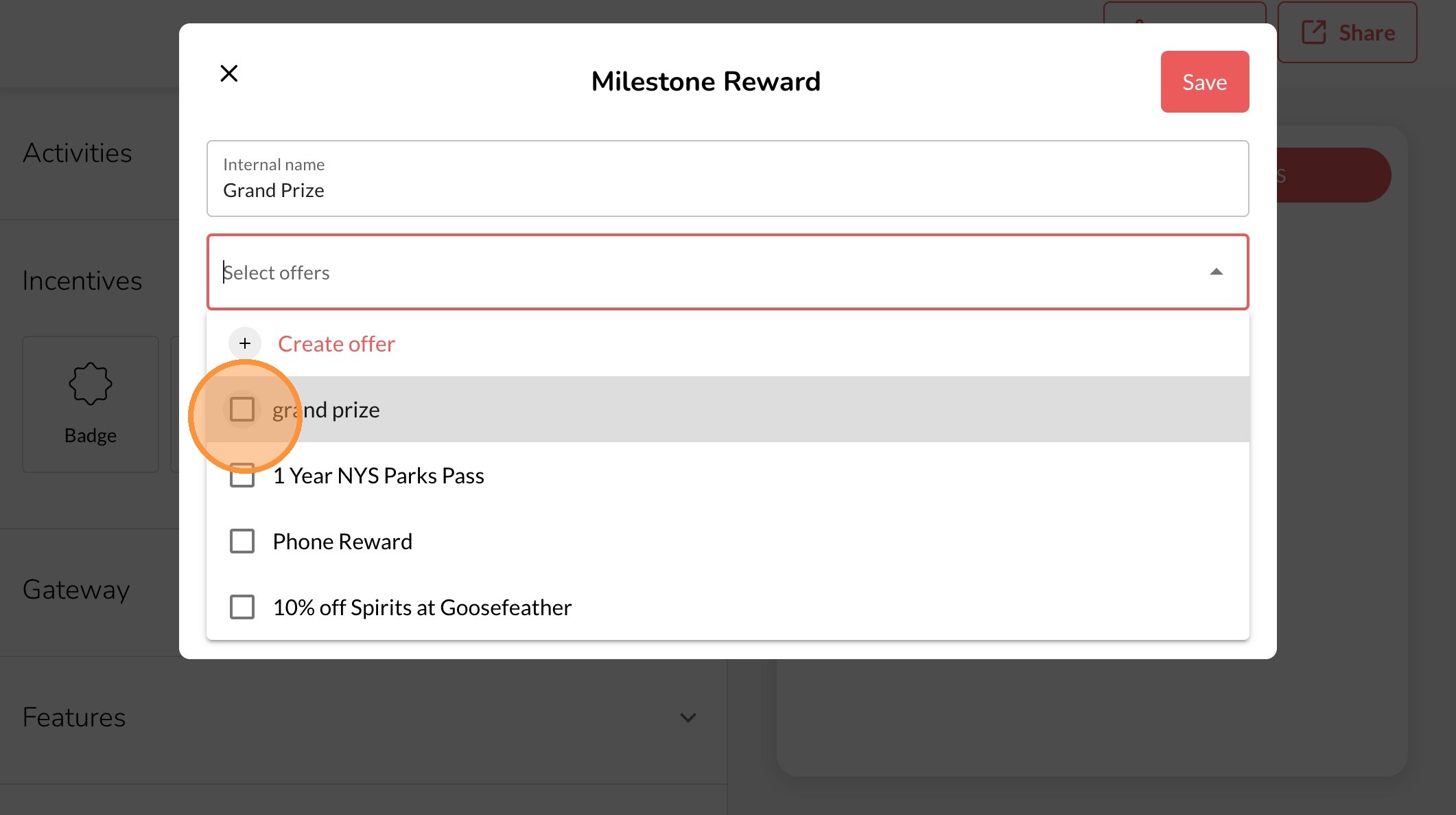 10. Select the Reward that will be offered or create a new one