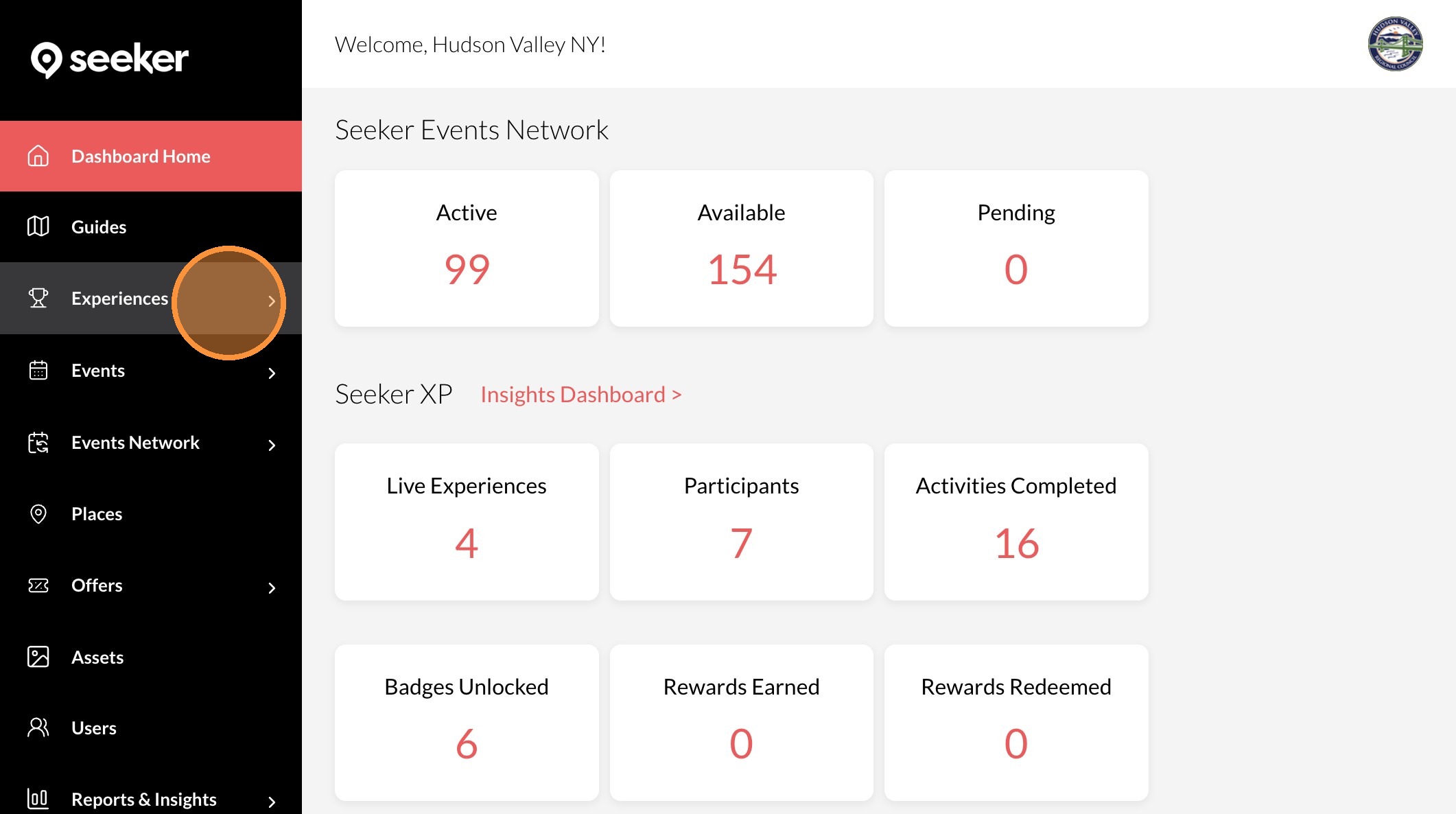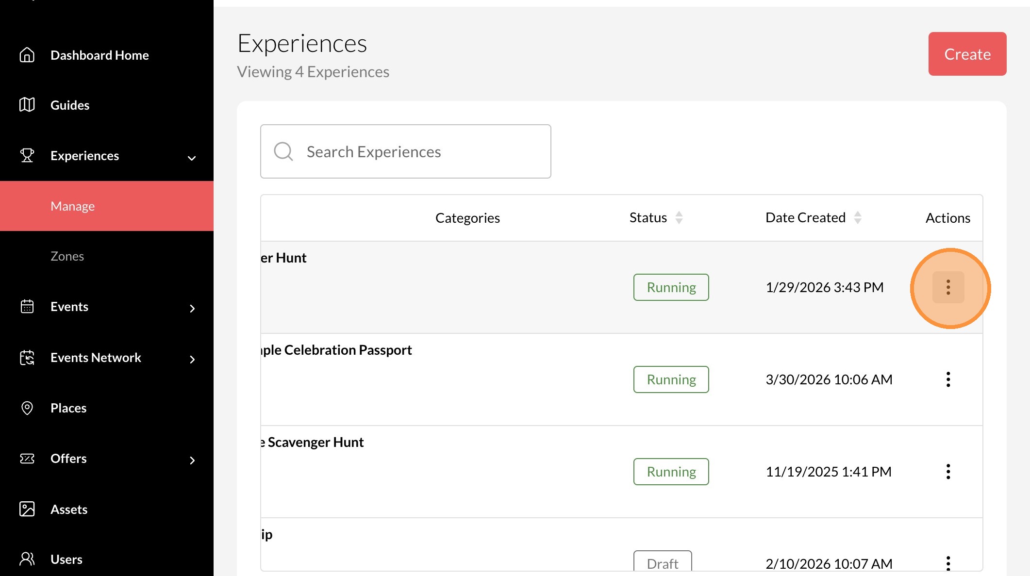 2. Click "Experiences"
