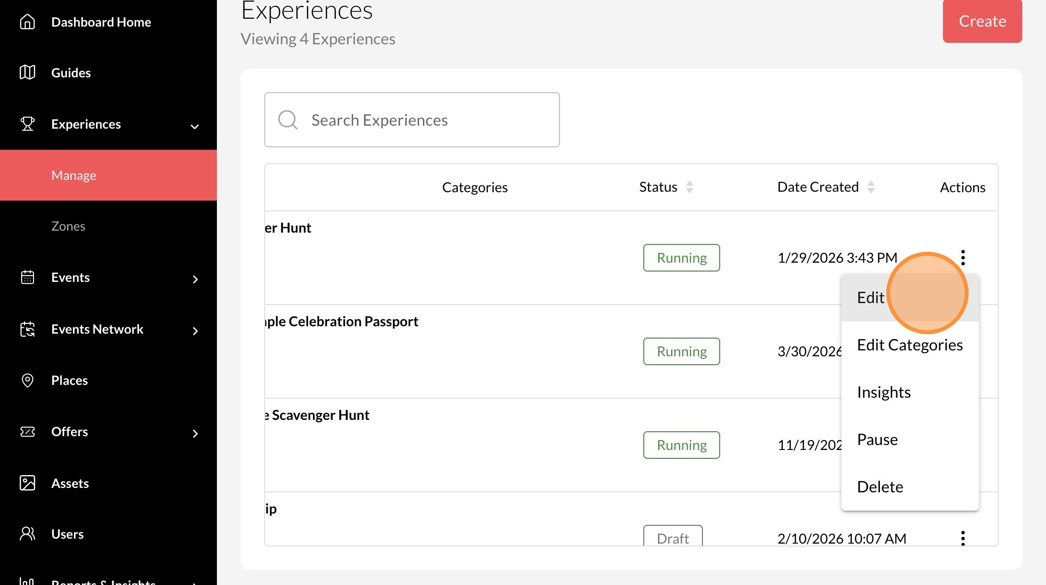 4. Click the "..." icon on the experience you want to edit