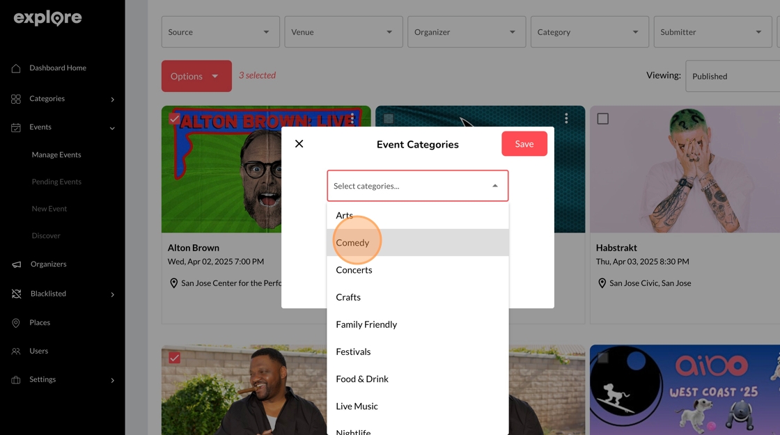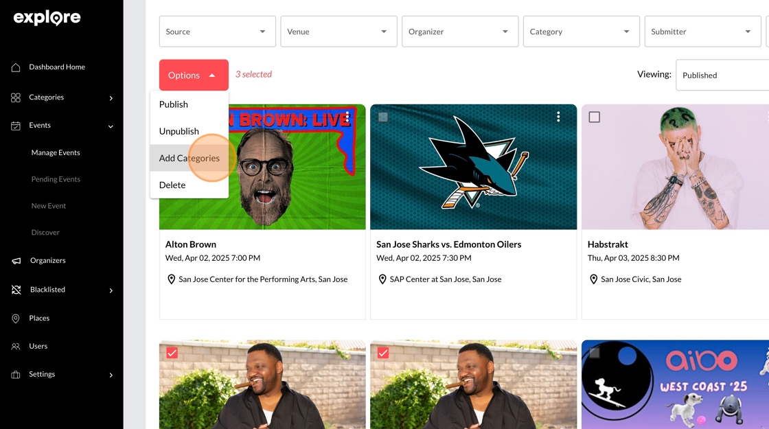 This article explains how to add categories to multiple events at once in the Seeker dashboard to improve event organization, filtering, and search functionality.