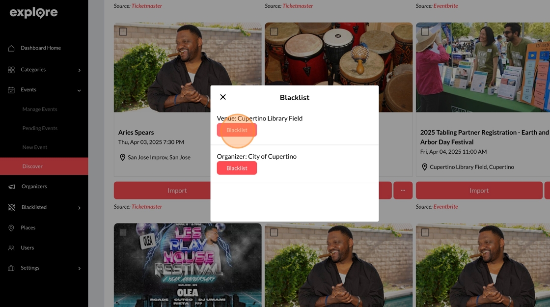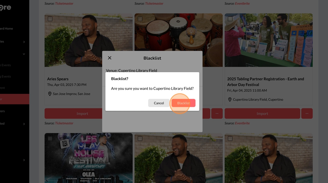 The blacklist in Seeker allows you to filter out events that don't meet your standards or relevance criteria. When a venue is blacklisted, all current and future events held at that location are hidden from your Discovery Feed.