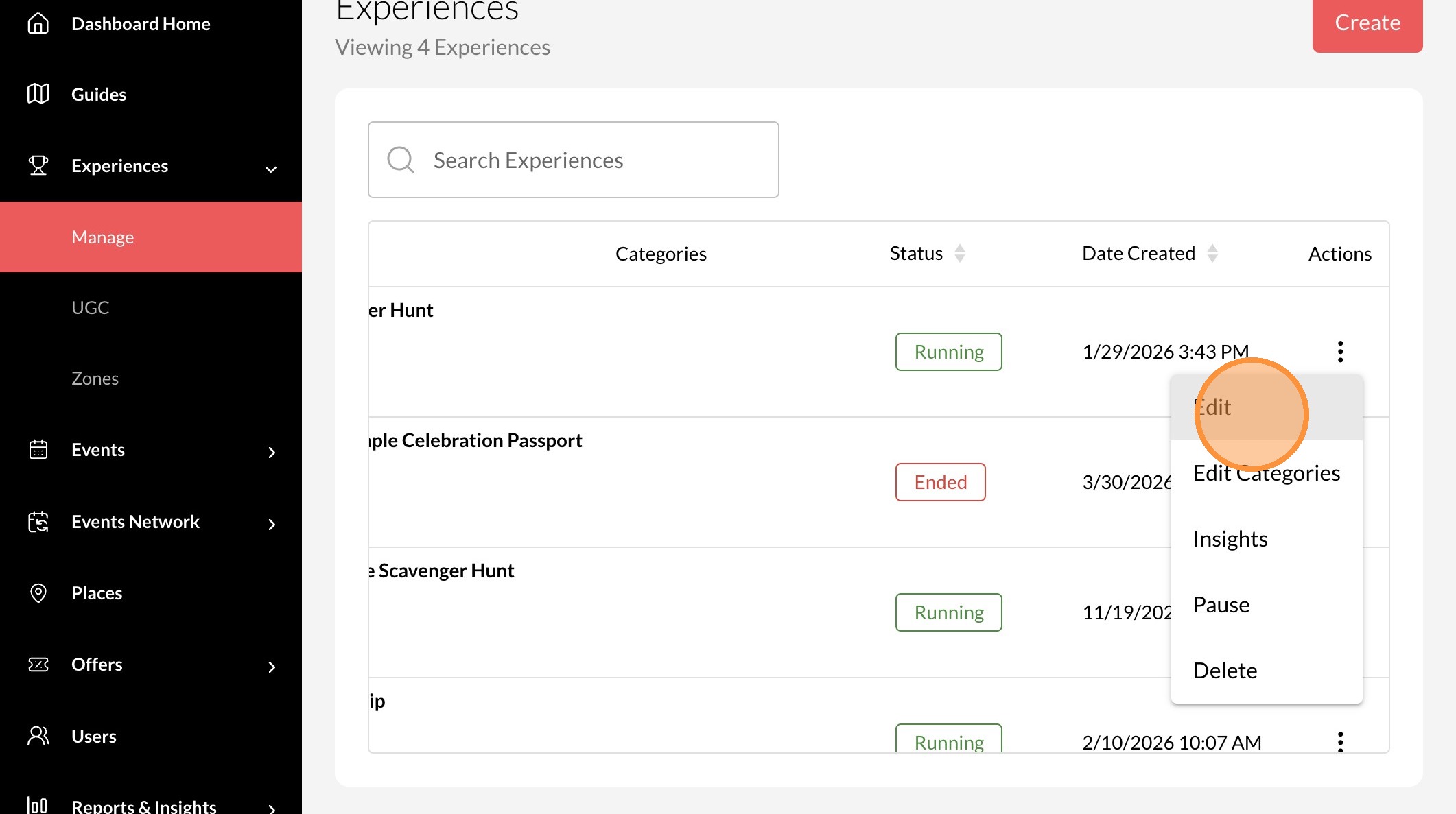 4. Click the "..." icon on the experience you want to edit