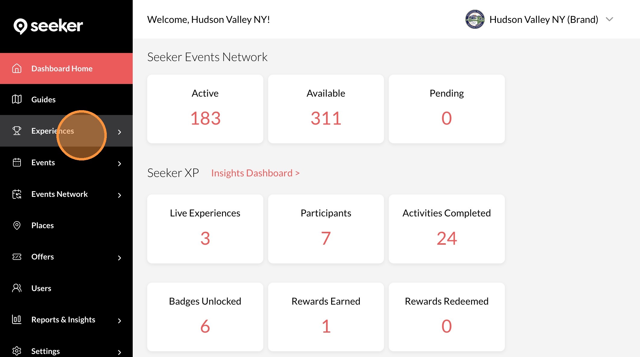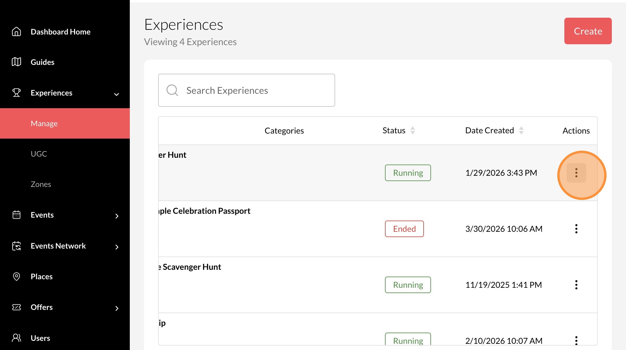 2. Click "Experiences"