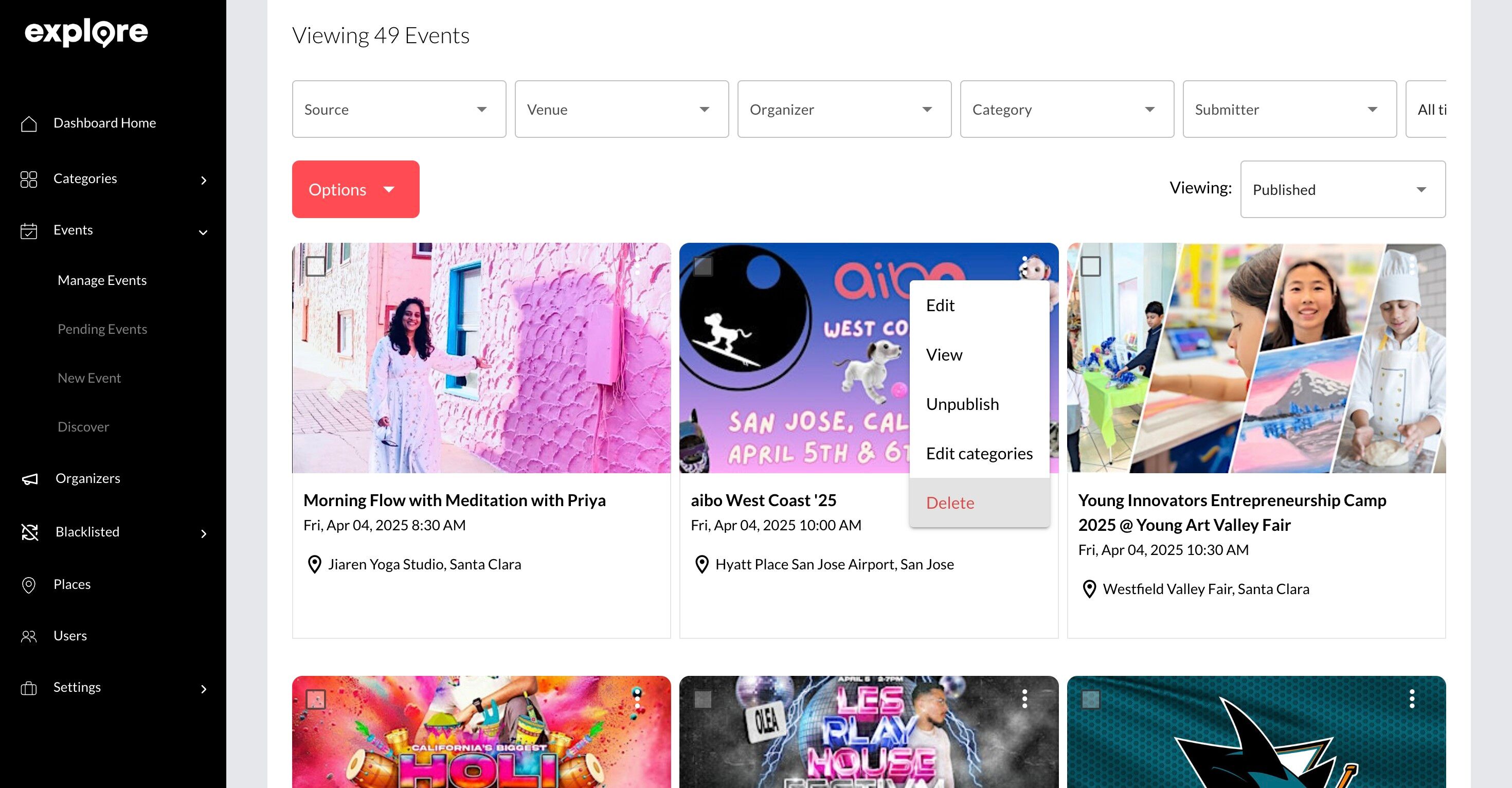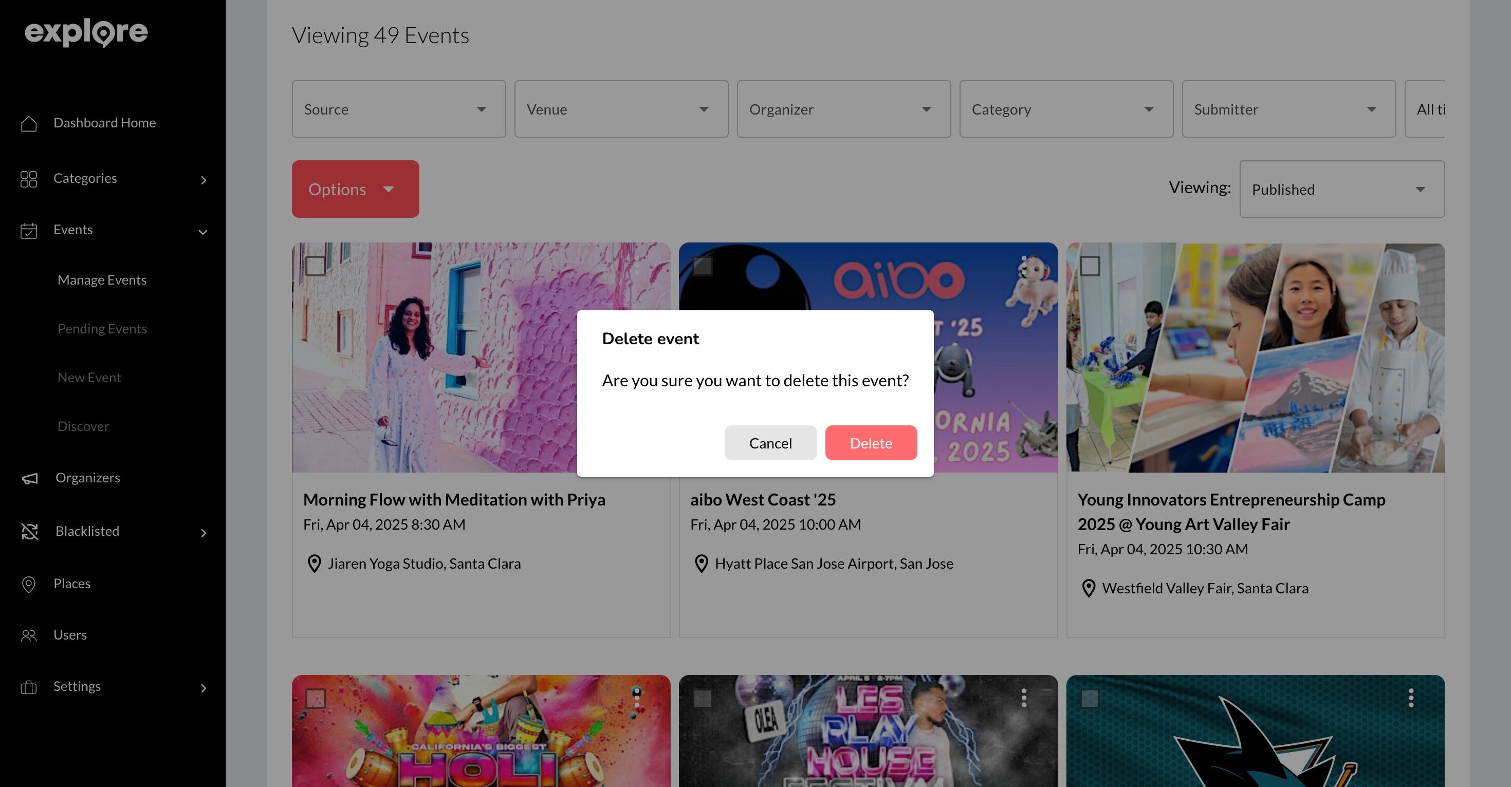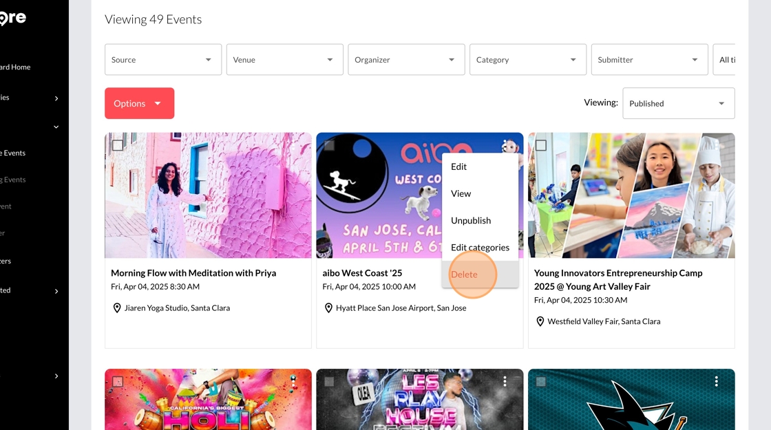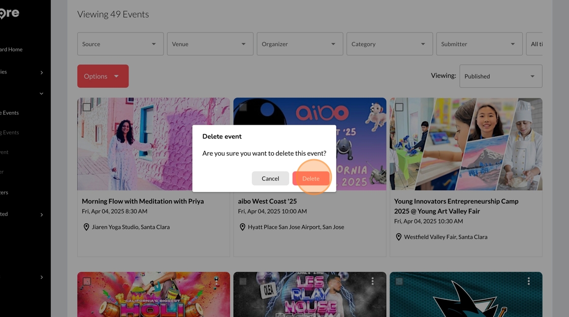 ⚠️ Important: Deleting an event is a permanent action. Once deleted, the event cannot be recovered. Be sure to double-check your selection before confirming the deletion.