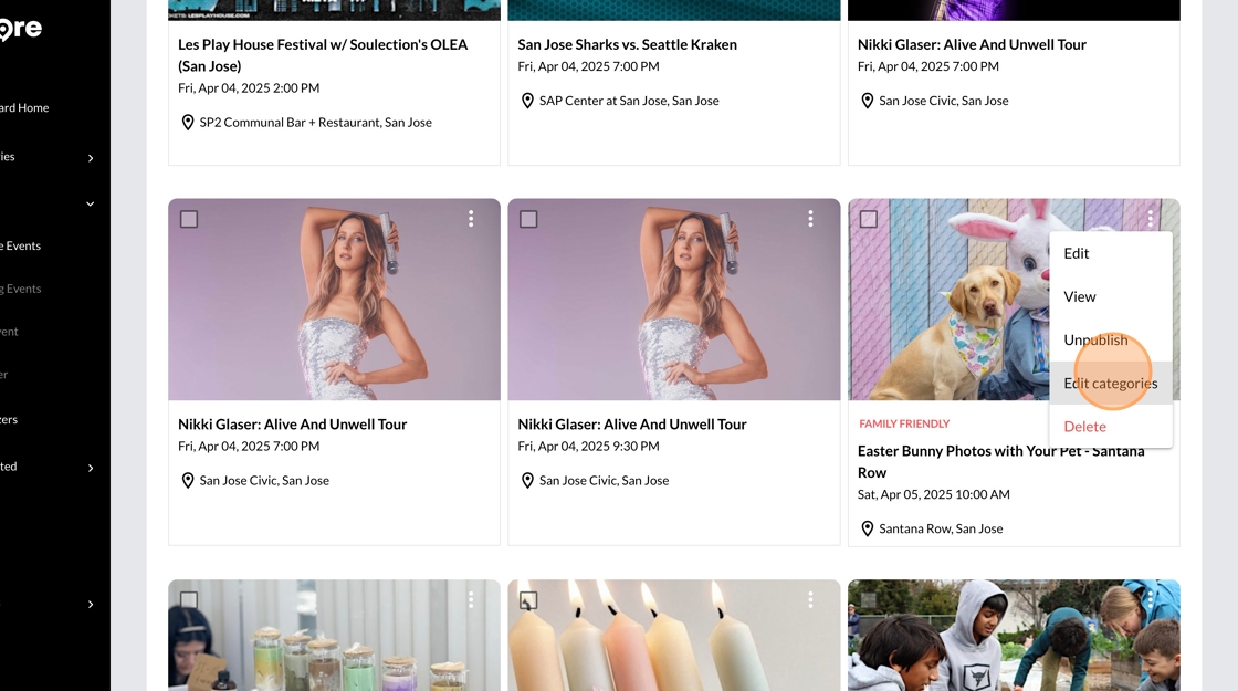 3. Find the event you want to remove the category from and click ...