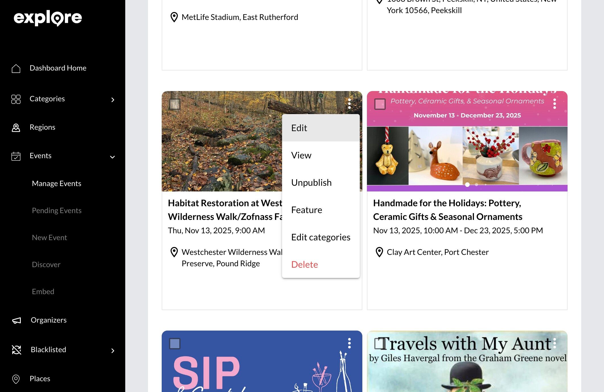 3. Click "Manage Events"