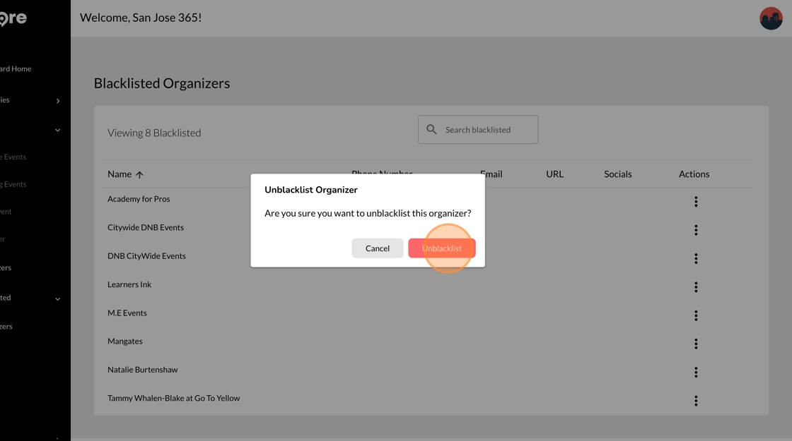 However, situations change—and you may decide to unblacklist an organizer to allow their events back into your feed. This might happen if the organizer has improved the quality of their submissions, clarified their event purpose, or is now working in alignment with your content standards.